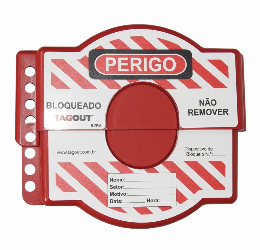 Bloqueio para válvulas de 1 a 6 " ajustável. Fabricado em material isolante e resistente. Suporta cadeados de até 10 mm de diâmetro da haste. Utilizado em diversos modelos de válvulas.